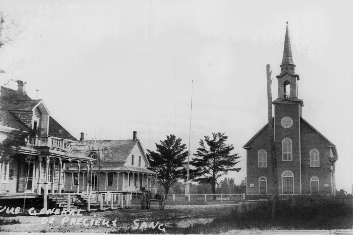 Photo de gauche : Vers 1975 — Auteur inconnu, photo tirée du livre Précieux-Sang 1903-2003, ouvrage collectif, 2003— Photo de droite : 2015 — Lorraine St-Arnaud